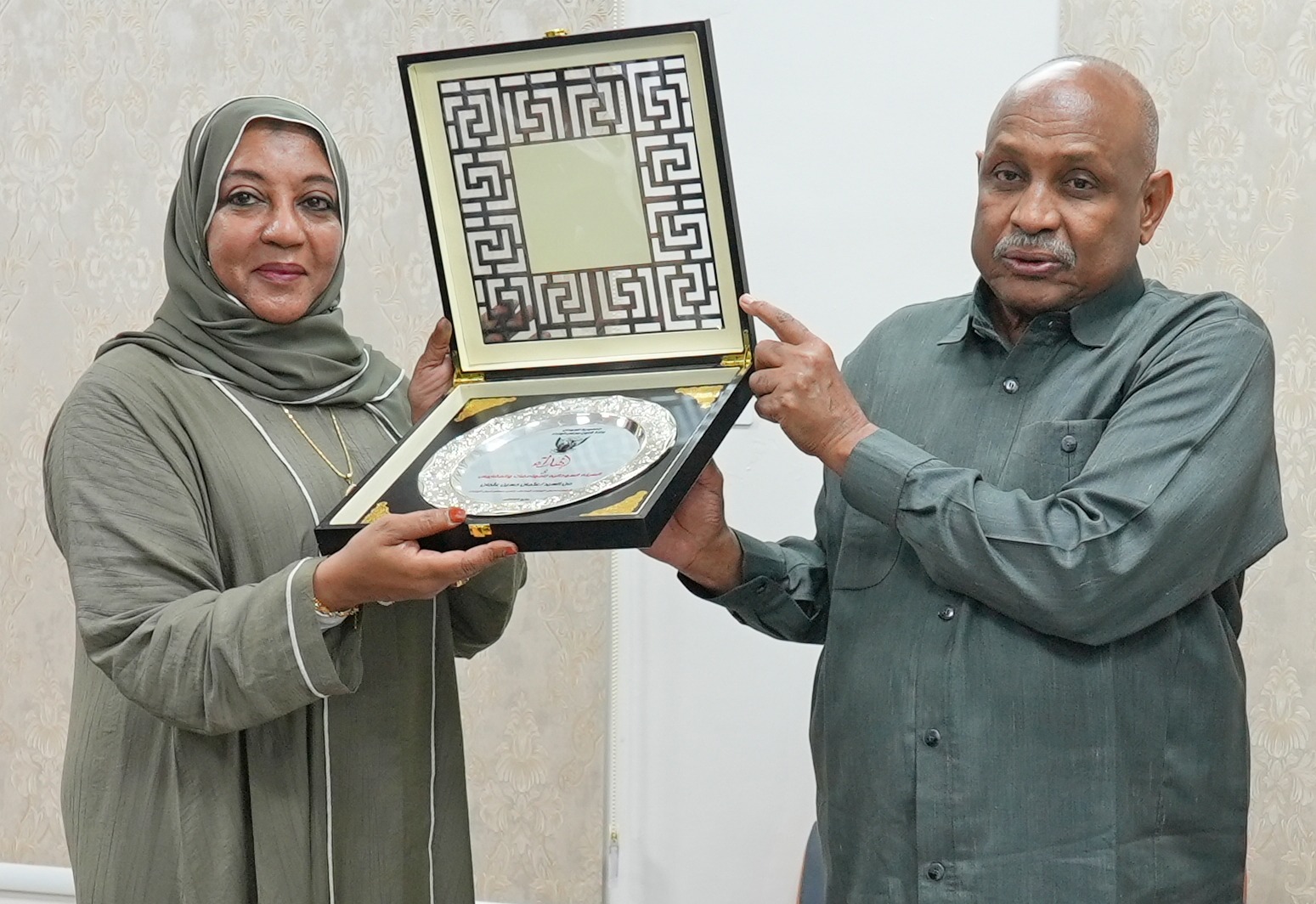 وتسلمت المدير العام للهيئة رحبة سعيد عبد الله (الاربعاء) تكريم مجلس السيادة من قبل الأمين العام لمجلس الوزراء عثمان حسين عثمان بحضور عدد من مديري الإدارات.