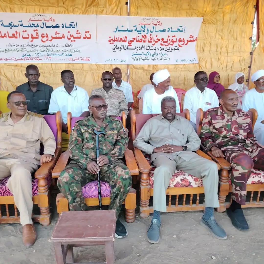 وحيا والي سنار جهود عمال ولاية سنار، مهنئا مواطني ولاية سنار بعيد الأضحى المبارك، كما حيا القوات المسلحة والقوات المساندة لها على الانتصارات التي تحققت في كل المحاور، مبينا أن مشروع توزيع خراف الأضاحي ومشروع قوت العاملين لامست حاجة العاملين، مؤكدا اهتمام حكومة ولايته بالعاملين، داعيا لتنفيذ مزيد من المشاريع.