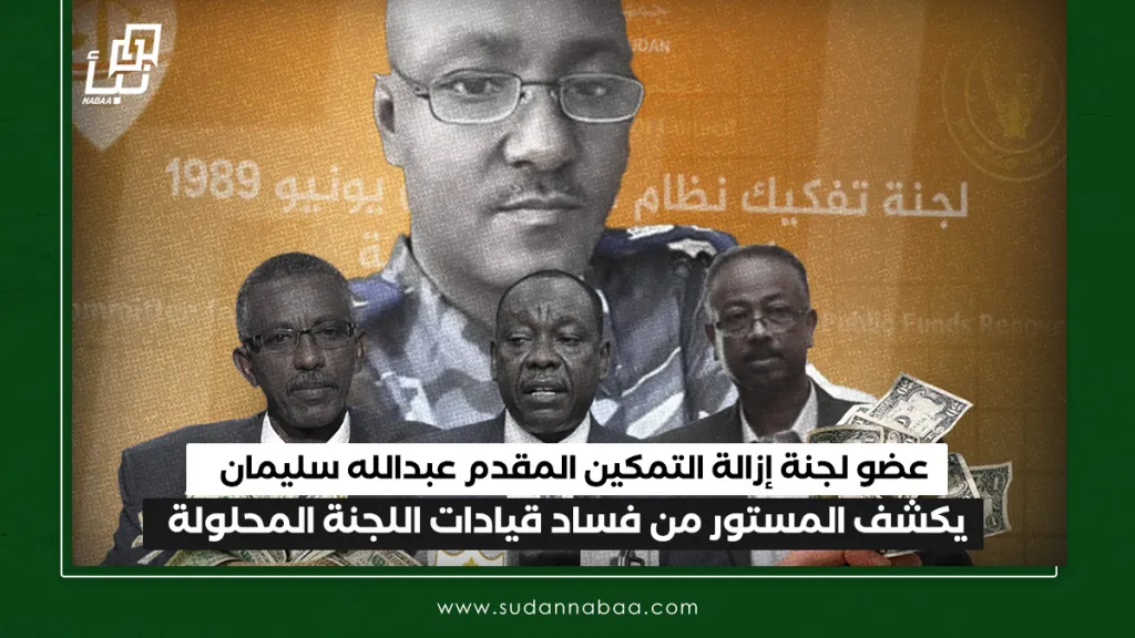 كشف عضو لجنة إزالة التمكين عبدالله سليمان عن تسليم لجنة التمكين قوات الدعم السريع كل المؤسسات التي استولى عليها في العاصمة بتعليمات مباشرة من عضو اللجنة صلاح مناع، مشيرا إلى إقناع الثوار بأن الدعم السريع صار جزء من لجنة التمكين.