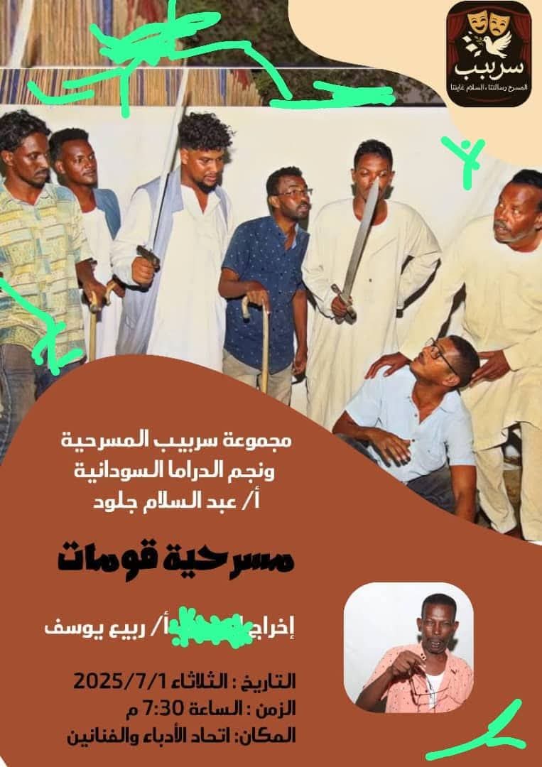احتفى المخرج ربيع يوسف الحسن باخراج مسرحية “قومات” على مسرح اتحاد الادباء والفنانين ببورتسودان.