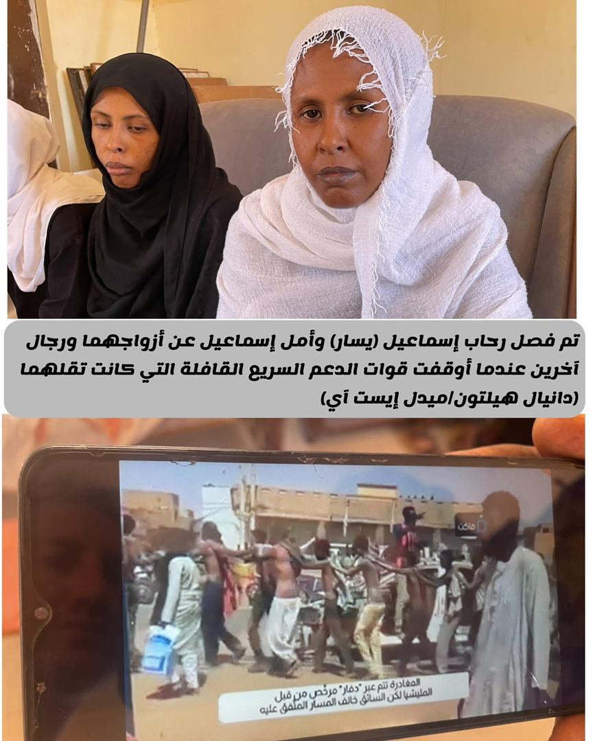 فيما تحدثت نساء عن اختطاف وابتزاز وحتى تهديد بالسكاكين، وتقول ريهام، زوجة أحد الضحايا: “لن نغفر لقوات الدعم السريع… ولن ننسى”.