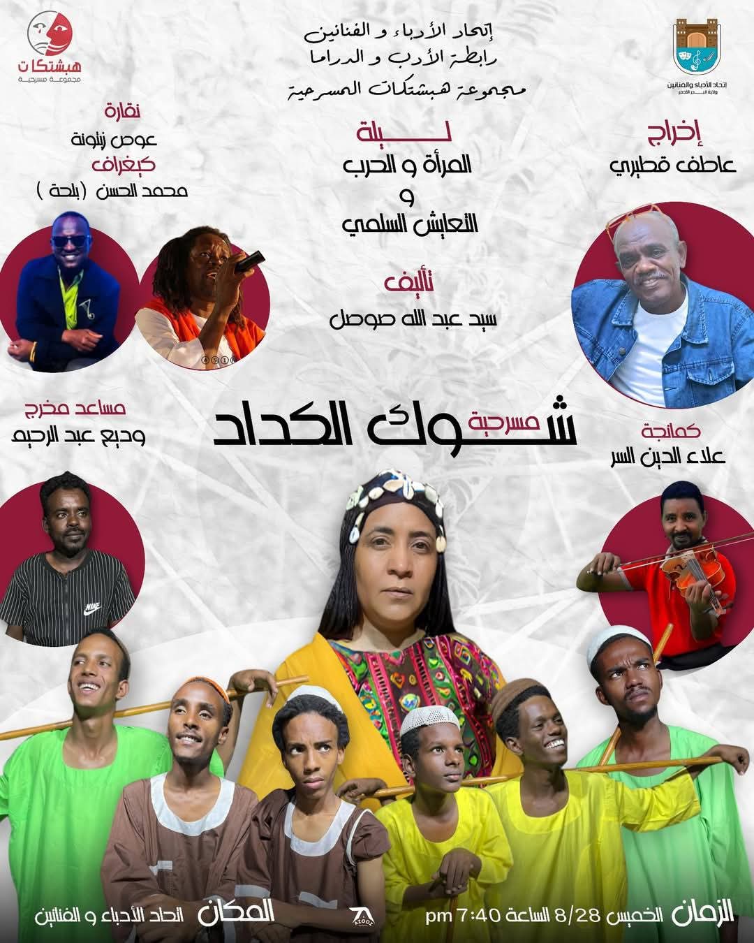 وتدشن رابطة الأدب والدراما ببورتسودان الخميس المقبل عرضين مسرحيين هما “شوك الكداد” و”الراكوبة” بالتعاون مع فرقة “هبشتكات” المسرحية.
