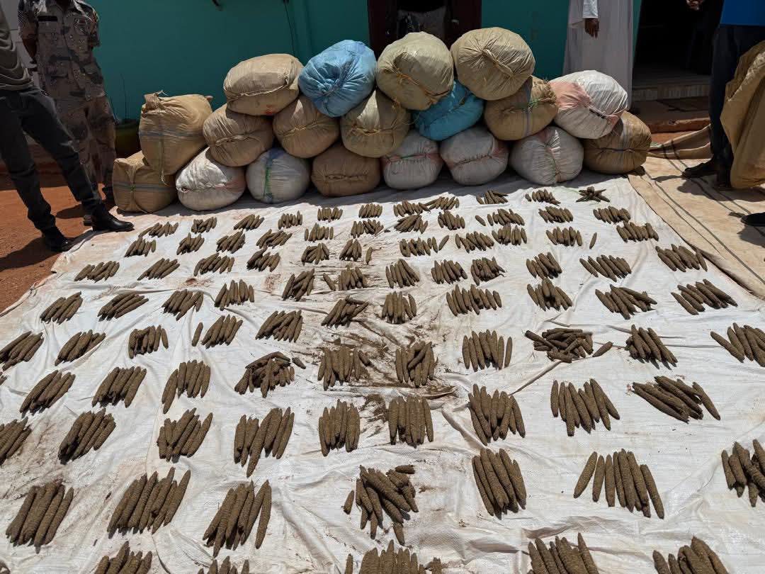 وتم العثور على المضبوطات مخزنة بعناية داخل موقع نائي جنوب مدينة المتمة، كانت في طريقها للتوزيع داخل البلاد.