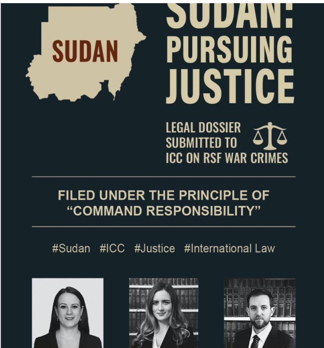 دفع فريق قانوني من مؤسسة Guernica 37 Chambers يتكوّن من لوسيا بريشكوفا، إيزابيلا كيروان، وتوم هاميلتون بملف مفصل إلى المحكمة الجنائية الدولية يوثق جرائم حرب ارتكبتها مليشيا الدعم السريع.