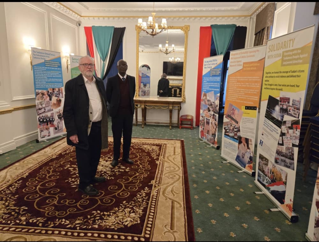 و تفقد كوربن خلال زيارته المعرض الدائم بالسفارة، والذي يوثق بالصور والوثائق حجم الانتهاكات التي يتعرض لها المدنيون، ويعرض حقائق مهمة عن خلفيات وتداعيات الحرب على السودان وشعبه، وأبدى اهتمامه بما شاهده ووعد بطرح الحقائق التي تحصل عليها أمام البرلمان البريطاني.يذكر أن كوربن يتخذ موقفا قويا ضد العدوان الذي يتعرض له السودان ودور رعاة المليشيا في ذلك، كما ينتقد التواطؤ الغربي فيه.