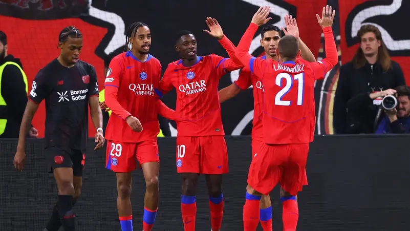 سجل باريس سان جيرمان حامل لقب دوري أبطال أوروبا لكرة القدم ثلاثة أهداف خلال سبع دقائق في نهاية الشوط الأول ليسحق مضيفه باير ليفركوزن 7-2 يوم الثلاثاء ضمن منافسات مرحلة الدوري بالبطولة، في مباراة لعب كل فريق لنحو ساعة منها بعشرة لاعبين.