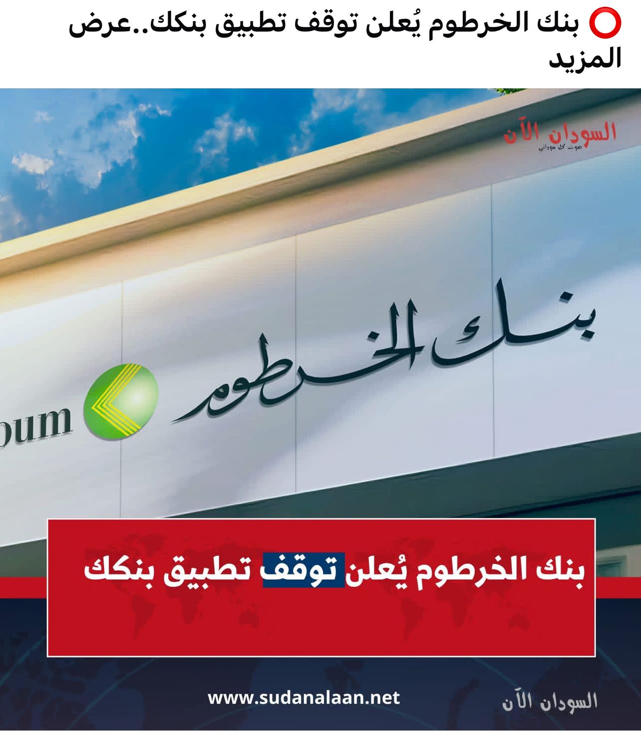 بنك الخرطوم يعلن توقف تطبيق بنكك Mazin أعلن بنك الخرطوم عن تنفيذ تحديثات مبرمجة على أنظمته الإلكترونية الخاصة بتطبيق «بنكك»، تبدأ في الساعة الثامنة مساءً من يوم الخميس 29 يناير 2026، وتستمر حتى العاشرة صباحاً من يوم الجمعة 30 يناير 2026. مقالات ذات صلة البرهان لحمدوك ومجموعته: لن تطأ أرجلكم أرض السودان عودة الحياة السلك البـرهـــان من داخل مجمع شيخ الهدية بالكلاكلة رويترز: شهادات توثق اختطاف عشرات الأطفال في دارفور وتهديدهم بالاستعباد