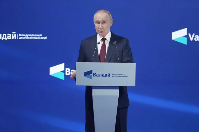 وفي كلمة له، الخميس، أمام الجلسة العامة لمنتدى “فالداي” الدولي للحوار المنعقد بمدينة سوتشي، قال بوتين متحديا الغرب “إذا أراد أحد التنافس مع روسيا عسكريا فليحاول، ونحن نراقب عن كثب عسكرة أوروبا وهذا أمر يتعلق بأمننا”.