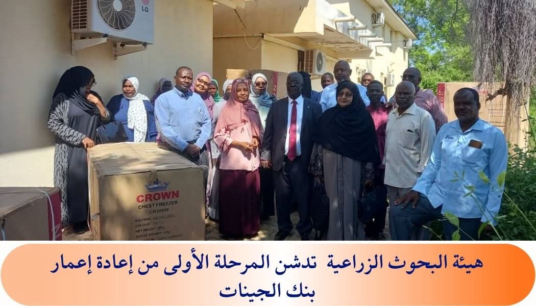 دشنت هيئة البحوث الزراعية أولى خطوات إعادة تأهيل بنك الموارد الوراثية تحت إشراف المدير العام المكلف بروفيسور أحمد حسن أبو عصار وبحضور عدد من مديري المراكز والأقسام والباحثين. حيث تم توفير عدد (19) ثلاجة ديب فريزر بتمويل من وزارة المالية الإتحادية لحفظ الأصول الوراثية النباتية.