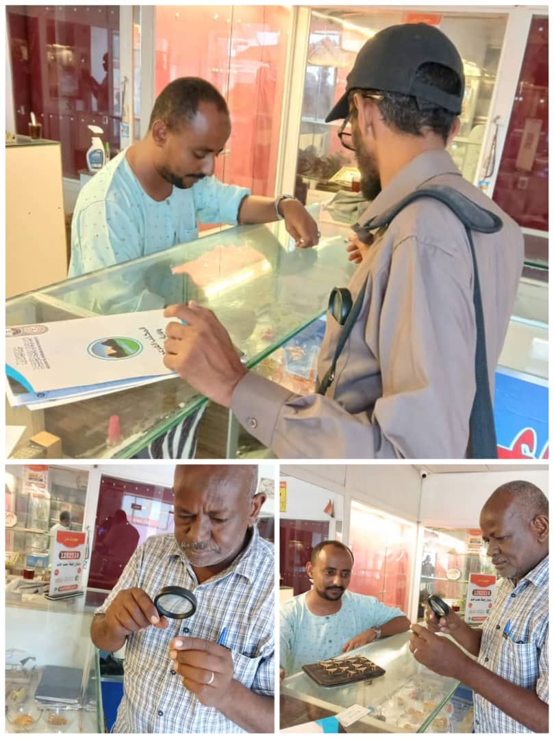نفذت وحدة التفتيش بدمغة المصوغات بكسلا حملات تفتيش وتوعية في كل من حلفا الجديدة وخشم القربة مع تقديم الرسائل الإرشادية للصاغة وتوزيع مطبوعات معرفية للمحلات والزبائن وتوزيع اشتراطات عرض وبيع المعادن النفيسة لأصحاب المحال التجارية.