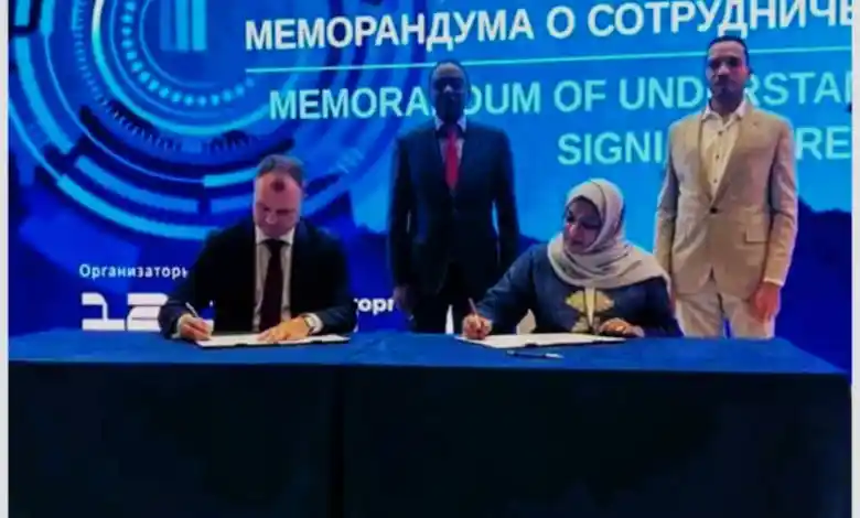 وتم التوقيع بحضور السفير السوداني بموسكو محمد الغزالي سراج بجانب المهندس أحمد نبيل مدير العلاقات الدولية بالهيئة