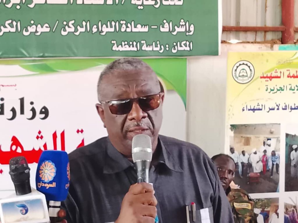 من جانبه أشاد د. إبراهيم الحسن مدير منظمة الشهيد بالولاية باهتمام حكومة الولاية والجهات الداعمة ببرامج وأنشطة المنظمة، مشيراً للدعم الدائم والمتواصل من القائد العام للقوات المسلحة لأسر الشهداء، معلناً انطلاقة مبادرة (من يشتري الجنة) لرعاية وكفالة أبناء الشهداء.