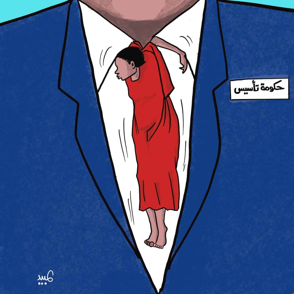 بهذا التصوير القاسي، يختصر الكاريكاتير معادلة الواقع: لا يمكن تأسيس دولة على جثث النساء والأطفال، ولا على حبال المشانق التي تُعلّق عليها كرامة المجتمع. “حكومة التأسيس” ليست سوى وجه رسمي يُخفي خلفه عنفًا ممنهجًا، ويحوّل الضحية إلى جزء من ديكور السلطة.