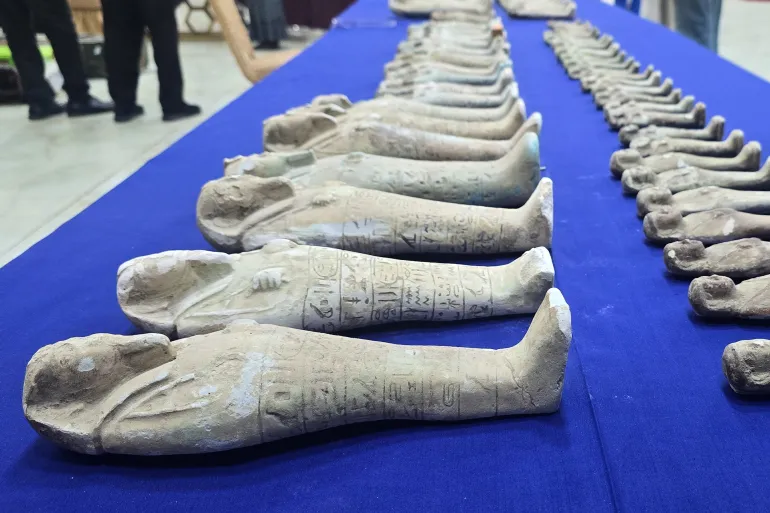 وكشف بدوي أن من ضمن الآثار المستعادة التماثيل الجنائزية التي تعود لفترة المملكة الكوشية، وفترتي نبتة ومروي، وأن بعض هذه التماثيل قد عُثِر عليها في المدافن الملكية الكوشية ابتداء، والتي تتمثل في “جبانة الكرو الملوكية”.