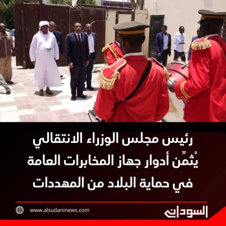 أثنى رئيس مجلس الوزراء الإنتقالي على الأدوار التي يقوم بها جهاز المخابرات العامة في حماية البلاد، إلى جانب القوات المسلحة والقوات المساندة، وفي الدفاع عن سيادة الدولة ضد المهددات الأمنية على جميع المستويات، مشيدا بمساهمة الجهاز في حرب الكرامة.