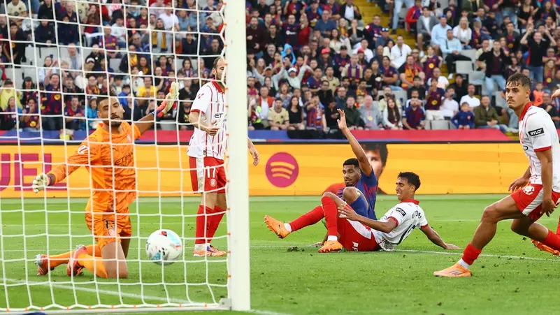 أنقذ الأورغوياني رونالد أراوخو فريقه برشلونة من التعثر للمرة الثالثة على التوالي في جميع المسابقات وسجل هدف الفوز على جيرونا في الوقت بدل الضائع لينتصر بطل الدوري الإسباني بهدفين مقابل هدف في مباراة الفريقين بالجولة التاسعة يوم السبت.