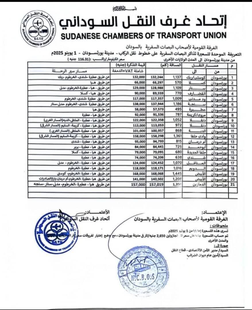 أعلنت الغرفة القومية لأصحاب البصات السفرية بالسودان بالتنسيق مع إتحاد غرف النقل السوداني عن زيادة جديدة في أسعار تذاكر السفر عبر البصات السفرية إبتداءا من شهر 1 يونيو.