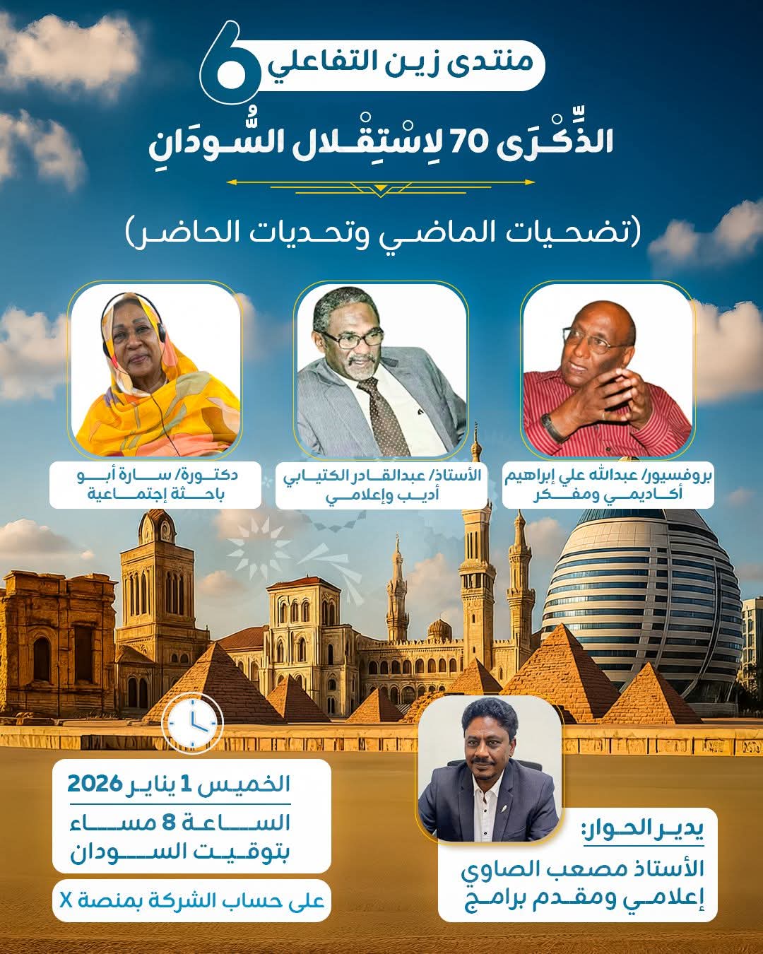 الحلقة السادسة والتي تم تخصيصها للذِّكْرَى 70 لاستقلال السودان ،تحت عنوان :(تضحيات الماضي وتحديات الحاضر).