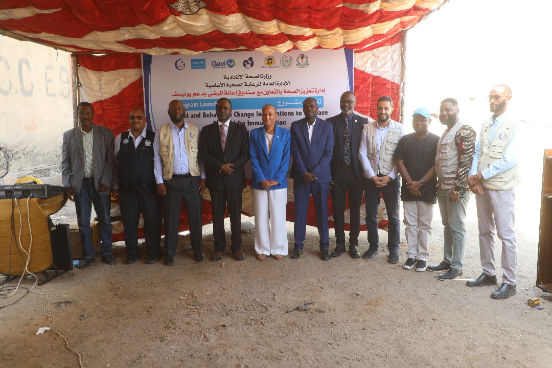 دشنت منظمة صندوق إعانة المرضى، الخميس، ببورتسودان المرحلة الثانية من معينات تغيير السلوك المجتمعي لزيادة الطلب على التطعيمات الروتينية بتمويل من يونيسف، بحضور د. علي بابكر وكيل وزارة الصحة الاتحادية ومعتز إبراهيم ممثل مفوض العون الإنساني ، د. منتصر محمد عثمان مدير إدارة الطوارئ الصحية ومكافحة الأوبئة ود. مصعب صديق مدير الإدارة العامة للرعاية الصحية الأساسية  وزكي إدريس حسين ممثل إدارة تعزيز الصحة ود. إسماعيل العدني مدير برنامج التحصين الموسع.