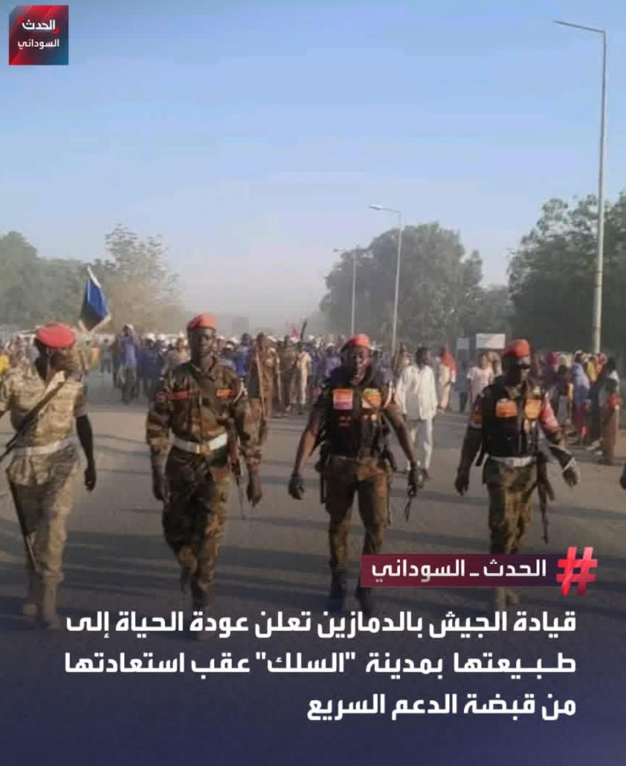 عودة الحياة السلك Mazin أعلنت قيادة الجيش في الدمازين بإقليم النيل الأزرق، عودة الحياة إلى طبيعتها، في مدينة السلك، عقب بسط سيطرتها عليها من قبضة الدعم السريع. وكشفت في بيان، عن شروع سكان المدينة في العودة إلى منازلهم ومزاولة أنشطتهم اليومية بصورة طبيعية. مقالات ذات صلة البرهان لحمدوك ومجموعته: لن تطأ أرجلكم أرض السودان بنك الخرطوم يعلن توقف تطبيق بنكك البـرهـــان من داخل مجمع شيخ الهدية بالكلاكلة رويترز: شهادات توثق اختطاف عشرات الأطفال في دارفور وتهديدهم بالاستعباد