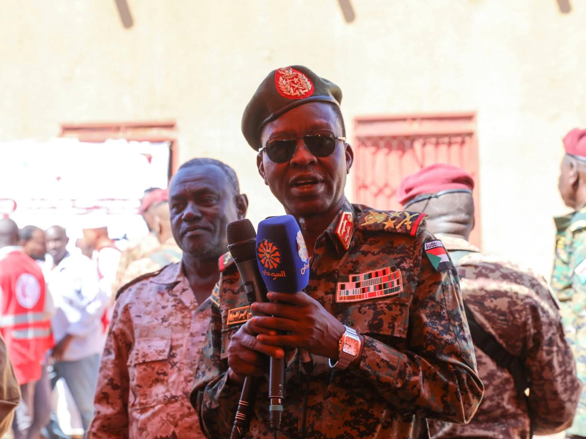 وتعهد كباشي أمام جموع النازحين بعودتهم قريبا الى ديارهم، وأكد أن انتصارات القوات المسلحة والقوات المساندة لها لن تتوقف حتى تحرير آخر شبر من أرض الوطن.
