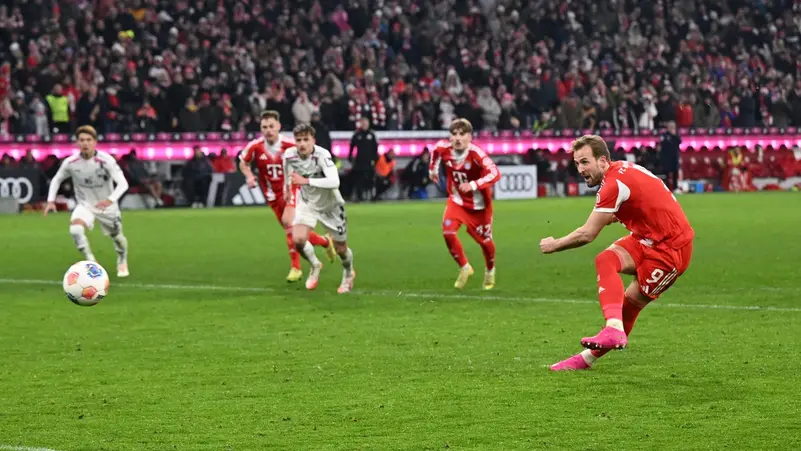 وبدا أن بايرن سيتلقى أول خسارة في الدوري الألماني خلال الموسم الحالي، انبرى هاري كين لتسديد ركلة جزاء حولها داخل المرمى في الدقيقة 87 ليمنح فريقه نقطة صعبة من ضيفه الذي يملك 7 نقاط في المركز الأخير.