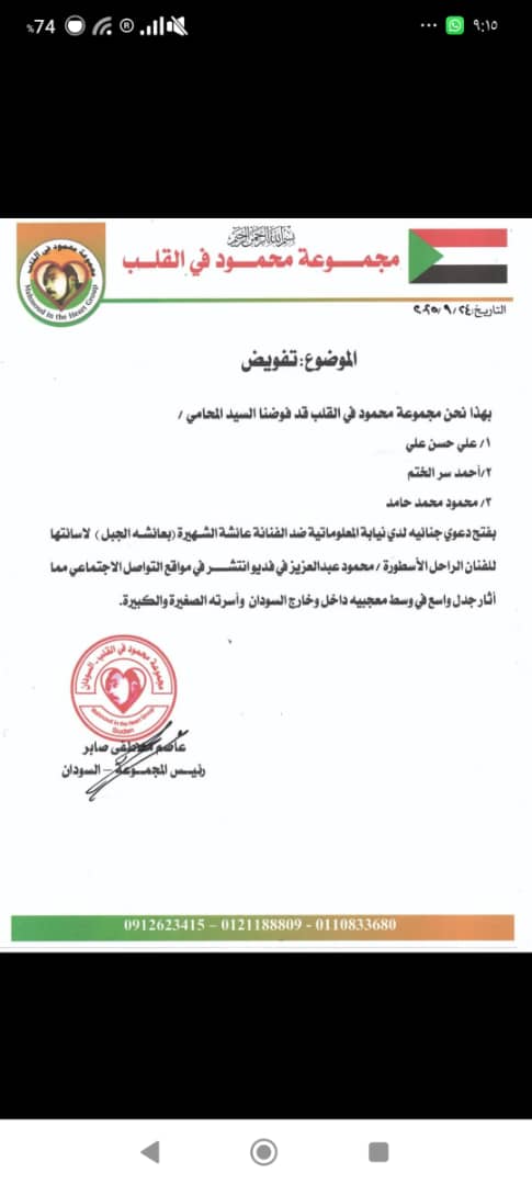 بعد انتشار مقطع وصفوه بالمسئ شرعت مجموعة محمود في القلب في إتخاذ إجراءات قانونية ودعوى قضائية ضد المغنية عائشة الجبل.