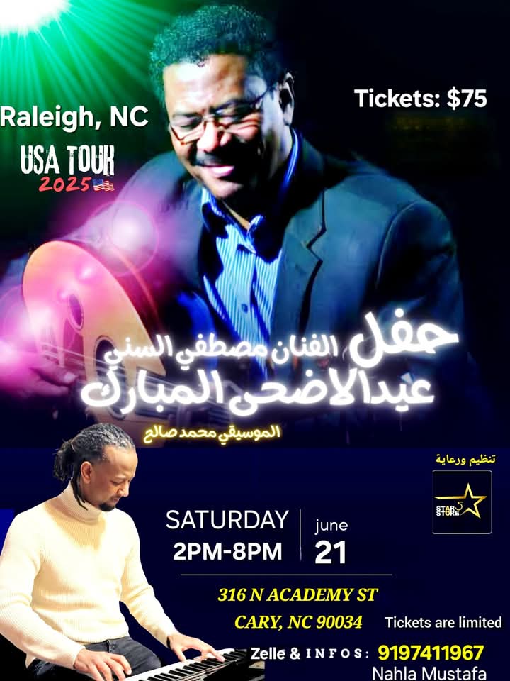 يشارك الفنان مصطفى السني، في رالي نورث كارولينا في 21 من الشهر الجاري في المهرجان المقام في لوس انجلوس كاليفورنيا 20 يونيو، الجاري.