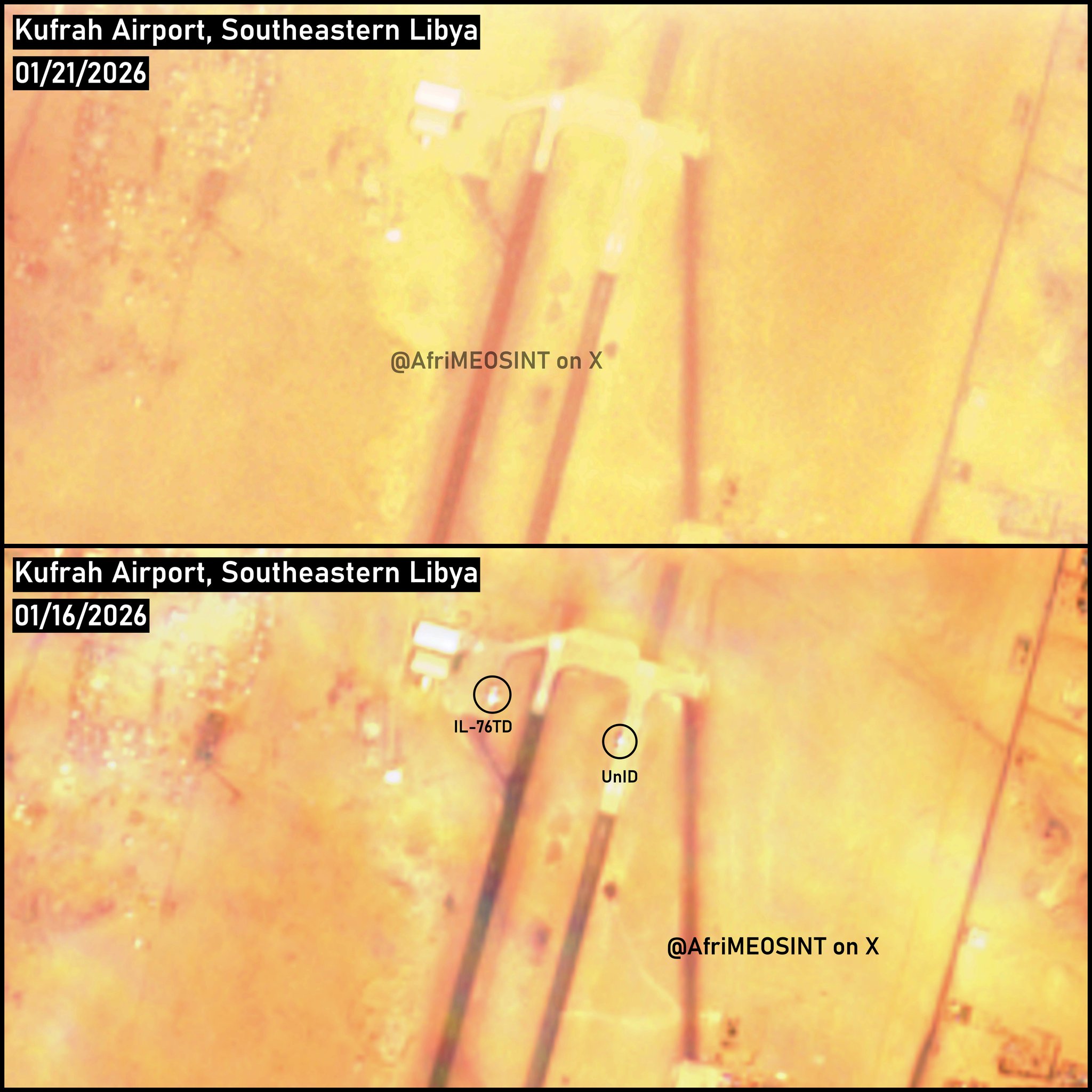 الأحداث – متابعات أكد خبراء الاستخبارات والرصد أن مطار الكفرة الدولي في أقصى جنوب شرق ليبيا قد خرج عن الخدمة بشكل فعلي في الوقت الراهن، حيث أظهرت صور أقمار صناعية التقطت يوم 21 يناير غياب أي نشاط جوي ملحوظ في المطار، مع مغادرة جميع طائرات الشحن الموجودة سابقاً، بما في ذلك طائرة شحن من طراز IL-76، بحسب ما أورده الخبير، ريش تيد.