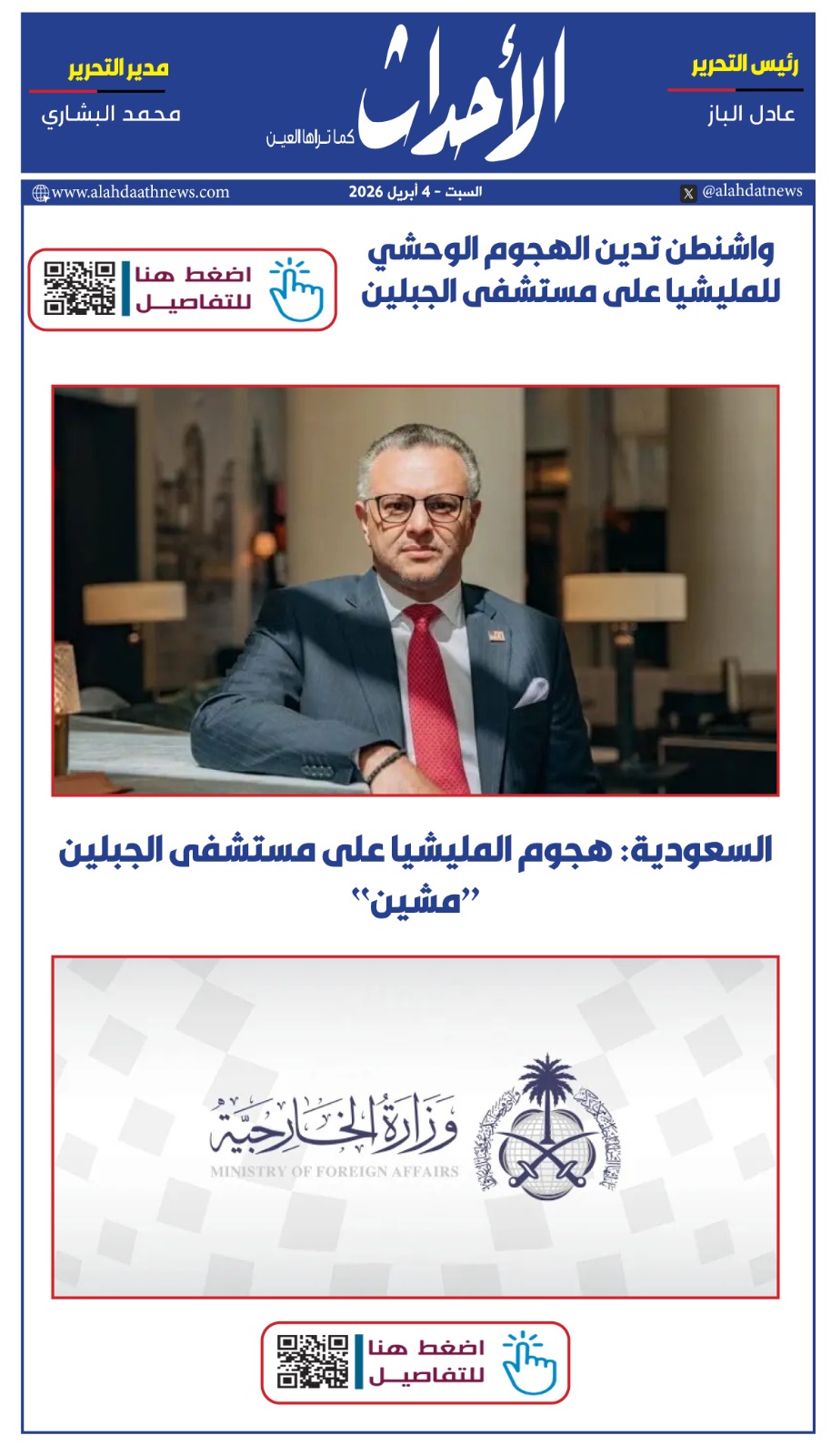 موجز عناويين نشرة الأحداث المسائية 4 أبريل 2026 Munzir https://alahdaathnews.com/wp-content/uploads/2026/04/WhatsApp-Video-2026-04-04-at-11.45.44-PM.mp4?_=1 مقالات ذات صلة موجز عناويين جريدة الأحداث 4 أبريل 2026 موجز عناويين نشرة الأحداث المسائية 3 أبريل 2026 موجز عناويين جريدة الأحداث 3 أبريل 2026 موجز عناويين جريدة الأحداث 2 أبريل 2026
