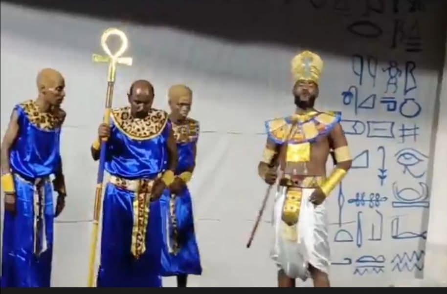 اشتغل المخرج على شخصيتي الملك (عكاف) و(كبير الكهنة) لقد وصلت الفكرة الجوهرية لرؤيته  الاخراجية. حيث أضعف كبير الكهنة صاحب السلطة الدينية، واكسب الملك عكاف صاحب السلطة السياسية قوة في شخصيته وعظمتها وهيبتها، حيث ركز المخرج على تكثيف هذه المعاني في الزي الذي اتسم بالفخامة والكاريزما، لا سيما دعمه باداء تمثيلي مجود من الممثل محمد البحر لتظهر شخصية عكاف بأنها أقوى. بينما ظهر الكاهن الأكبر الممثل قاسم العربي شخصية مهزوزة ضعيفة يستخدم الصراخ والتشنج لاثبات نفسه، فضلا على مساواته في الزي مع الكهنة الذين هم في معيته، فأصبح لا يتميز باي صفة تجعله صاحب (كلمة).