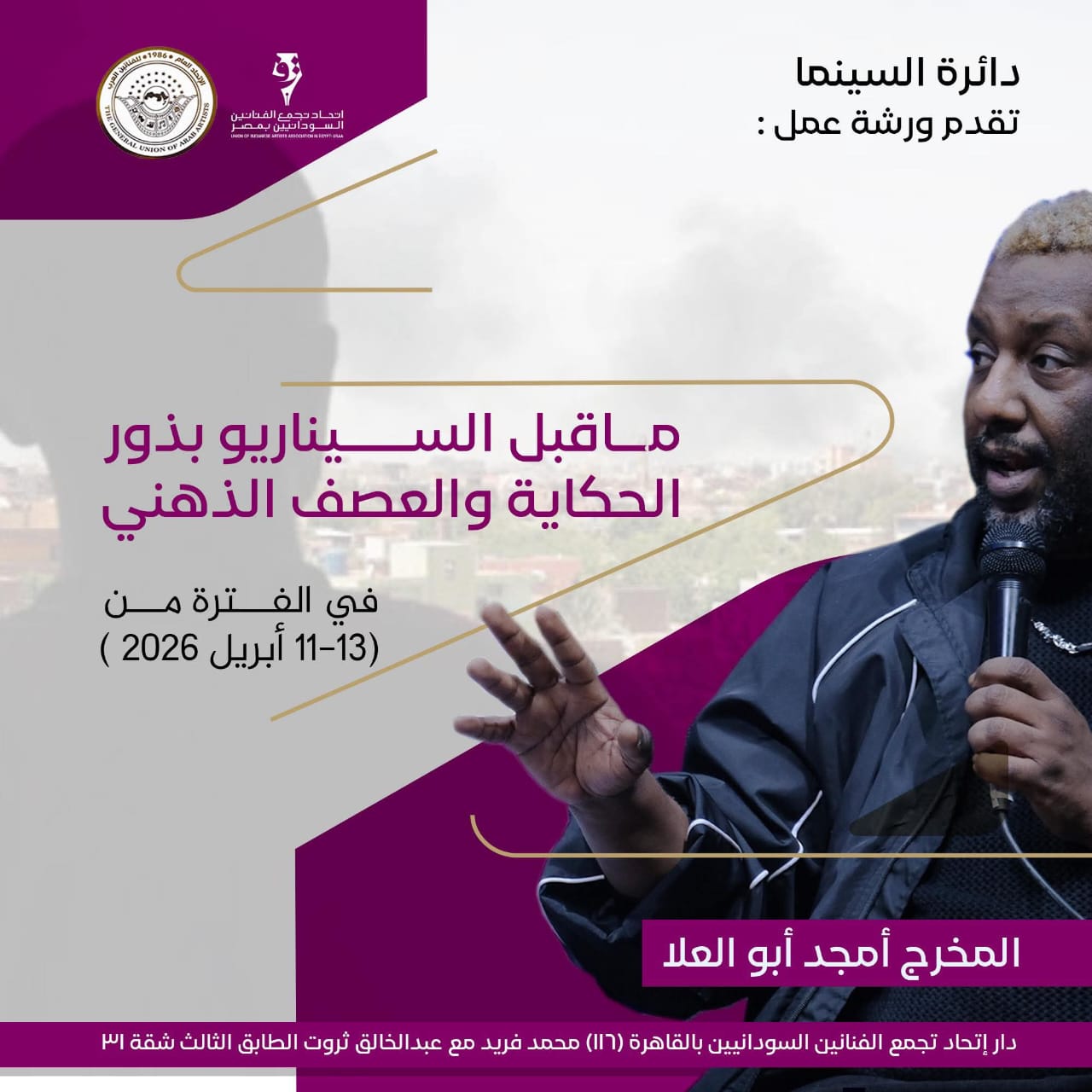 وتقام الورشة بشكل مجاني، بتنظيم وتعاون من اتحاد وتجمع الفنانين السودانيين في القاهرة، في إطار دعم المواهب الشابة وتوثيق التجارب الإنسانية المرتبطة بالحرب من خلال الفن والكتابة السينمائية.