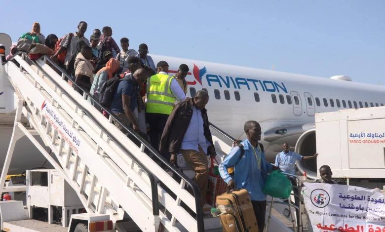 وصول الفوج الثاني من اللاجئين السودانيين العائدين من يوغندا إلى مطار بورتسودان